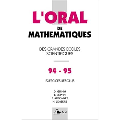 ontents in L ORAL DE MATHEMATIQUES AUX CONCOURS D ENTREE DES GRANDES ECOLES SCIENTIFIQUES. Crus 1994-1995 De Mathematiques PDF Kindle is really interesting content that do not let you miss not to read, other than that we are giving affordable deals according to the contents of your wallet pockets. L ORAL DE MATHEMATIQUES AUX CONCOURS D ENTREE DES GRANDES ECOLES SCIENTIFIQUES. Crus 1994-1995 De Mathematiques PDF ePub was awarded so many readers will not get bored reading it.
